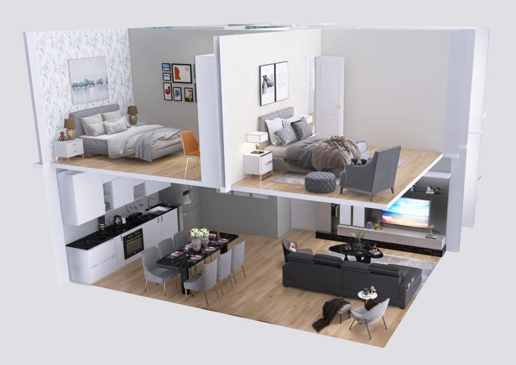Превърнете вашия архитектурен проект в интерактивно преживяване! С нашата услуга за виртуален тур на визуализация клиентите ви ще могат да разгледат бъдещия имот сякаш вече е построен. Всичко, което ни е необходимо, е проект и скица на имота. На тази основа създаваме реалистичен 3D виртуален тур и визуализирани снимки, който показва пространството в детайли – материали, осветление, обзавеждане и усещане за мащаб.